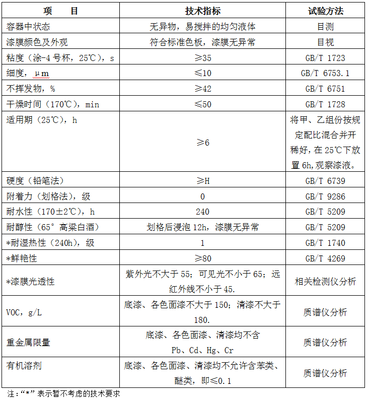 ·主要特性 漆膜顏色鮮艷、光亮、豐滿,涂裝在玻璃瓶表面可形成漂亮的“瓷釉”。漆膜具有優(yōu)良的附著力、硬度、耐磨性、耐水性、耐醇性及耐濕熱性。